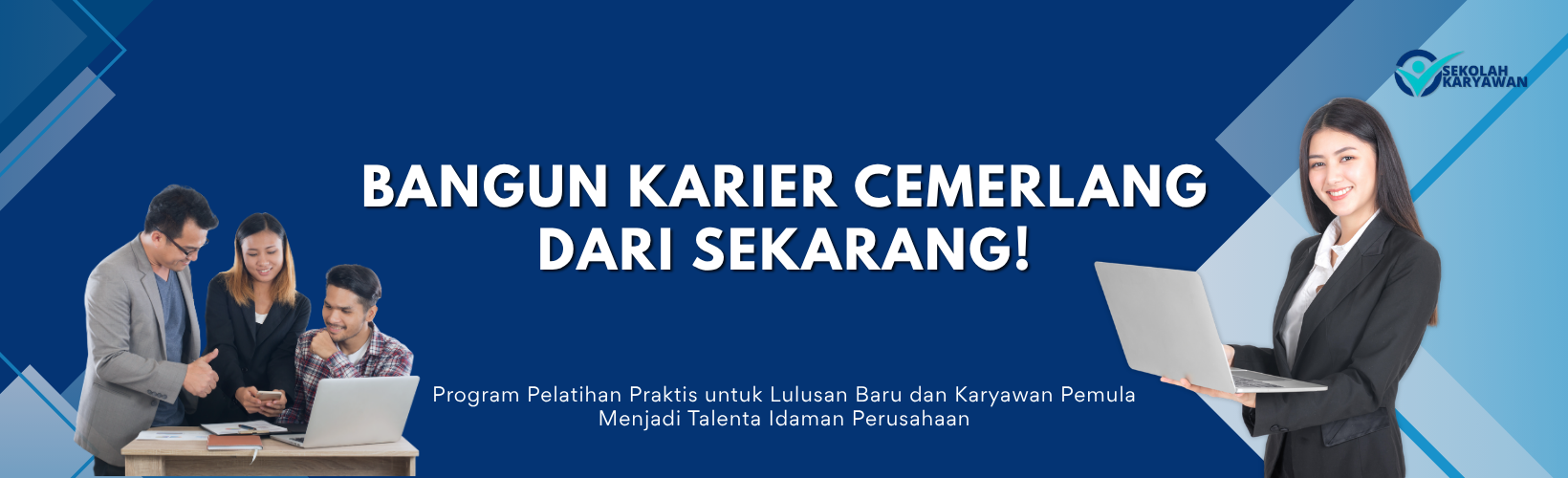 Sekolah Karyawan adalah program pelatihan yang dirancang khusus untuk lulusan baru dan karyawan pemula. Kami membekali setiap peserta dengan fondasi profesionalisme, etos kerja, dan kompetensi yang dibutuhkan untuk tidak hanya bertahan, tetapi juga unggul di dunia kerja. Persiapkan diri Anda untuk memasuki jenjang karier yang lebih tinggi bersama kami.